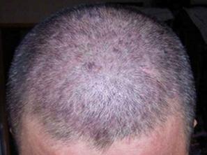 頭皮銀屑病的皮疹常位于頭頂或發際處,甚至泛發整個頭皮,呈現為紅斑或丘疹,覆蓋厚厚的銀白色鱗屑。皮疹處頭發常呈束狀,但不引起脫發,對診斷有提示作用。皮疹嚴重時可使整個頭皮呈現為彌漫性干性鱗屑性紅斑,像帽子一樣籠罩整個頭皮,使患者極度不適。頭皮表面有時也可覆蓋黃色或污穢的厚痂,同時頭皮銀屑病有明顯的Auspitz征(鱗屑易于刮除,刮去后可看到淡紅發亮的半透明薄膜,刮破薄膜可見小出血點)。